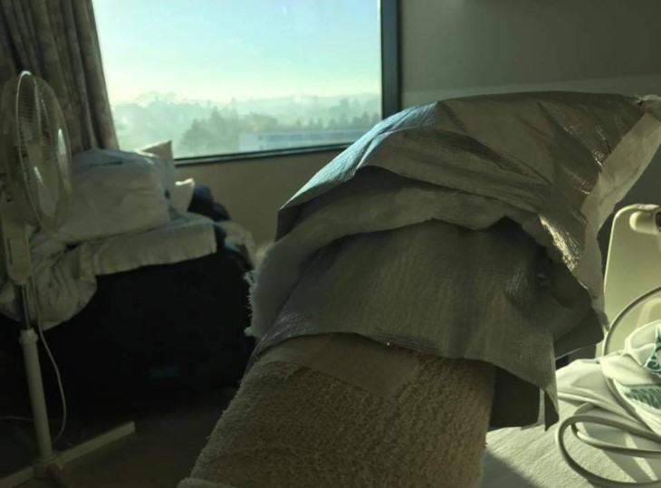 She had to keep her hand up to assist the blood-flow. She had to sleep with her hand on cushions. And she was still exhausted from three general anaesthetics.