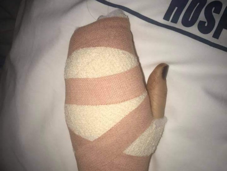 The pain following her finger being amputated, and her stitches being removed, was excruciating.